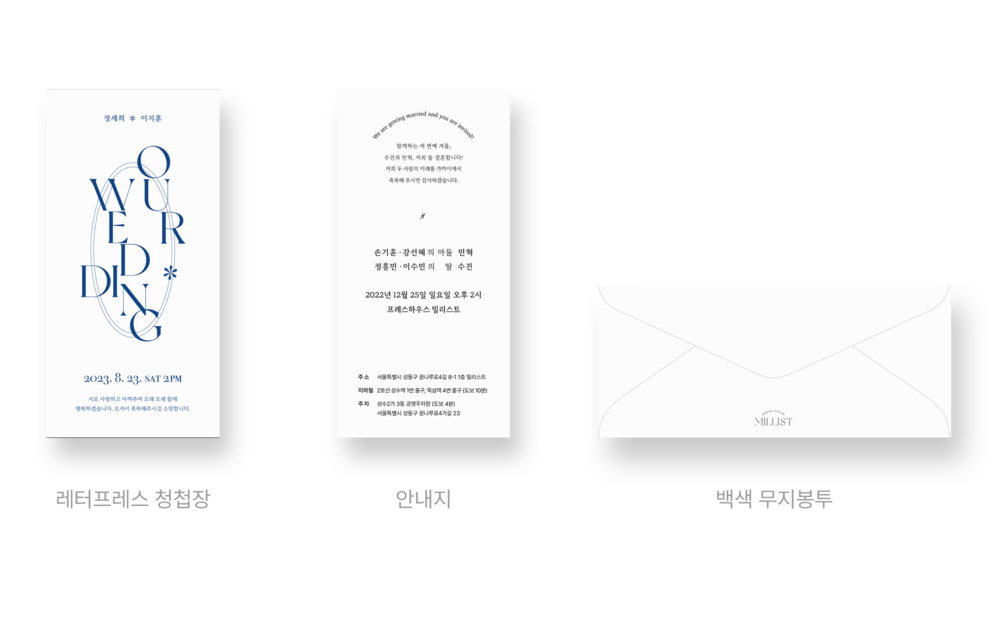 밀리스트 오리지널 아워웨딩 청첩장입니다.